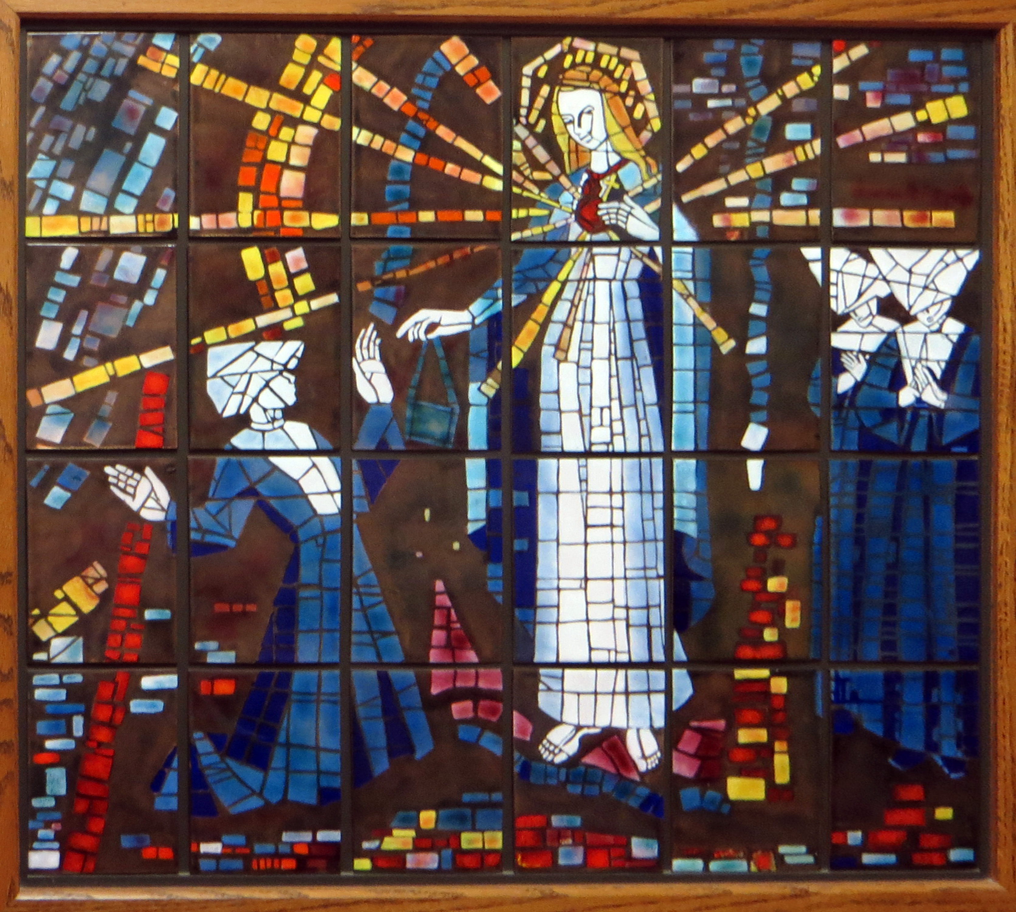 Copy of faceted glass window in St. Joseph Hospital, Chicago; on glazed tiles.