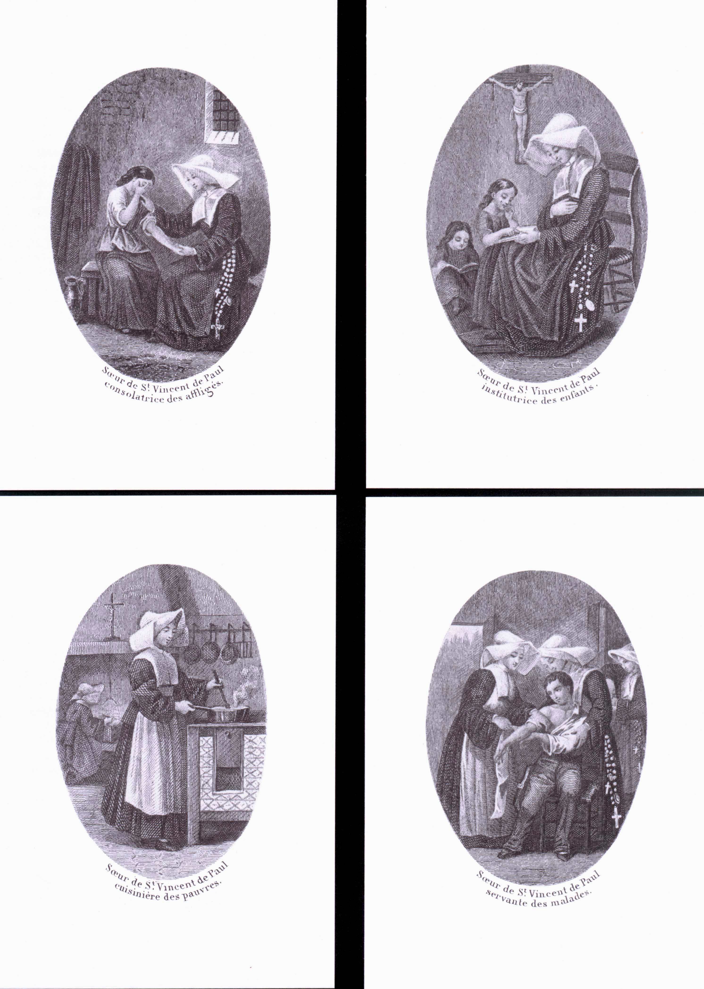 Collection de 9 gravures illustrant les Ïuvres de Filles de la CharitŽ.