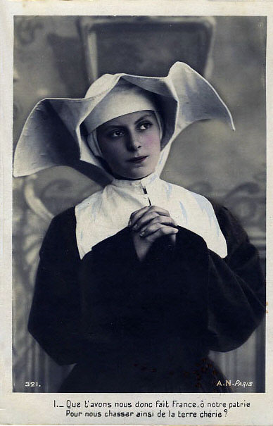 Text: What have we done to you France, our homeland, that you chase us away from our dear country? Internet image Posed by actress