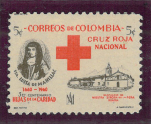 Tercentenary of death of Louise de Marillac; drawing of shrine at right; Red Cross emblem