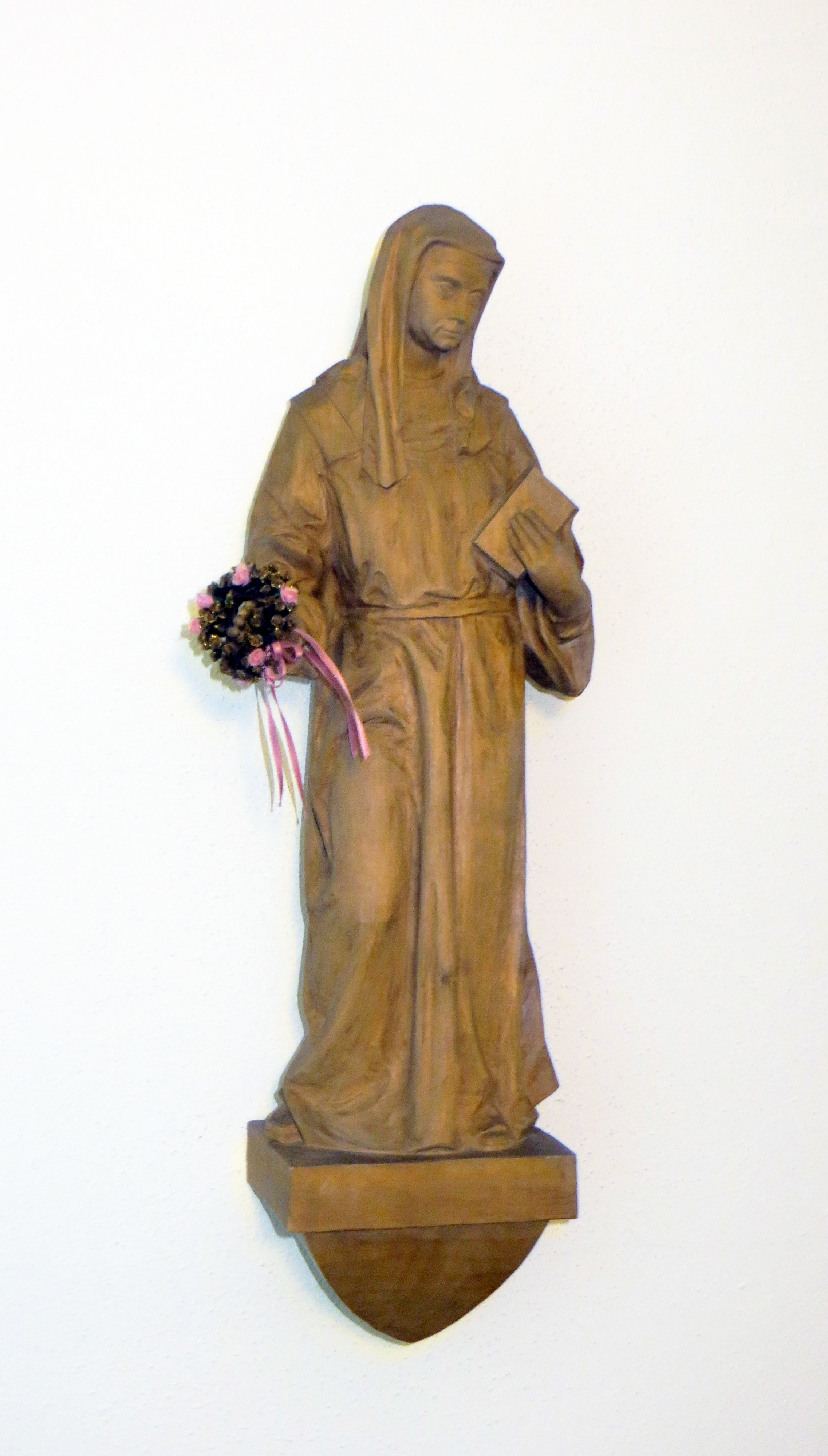 Munich, small wood statue, with flowers.jpg