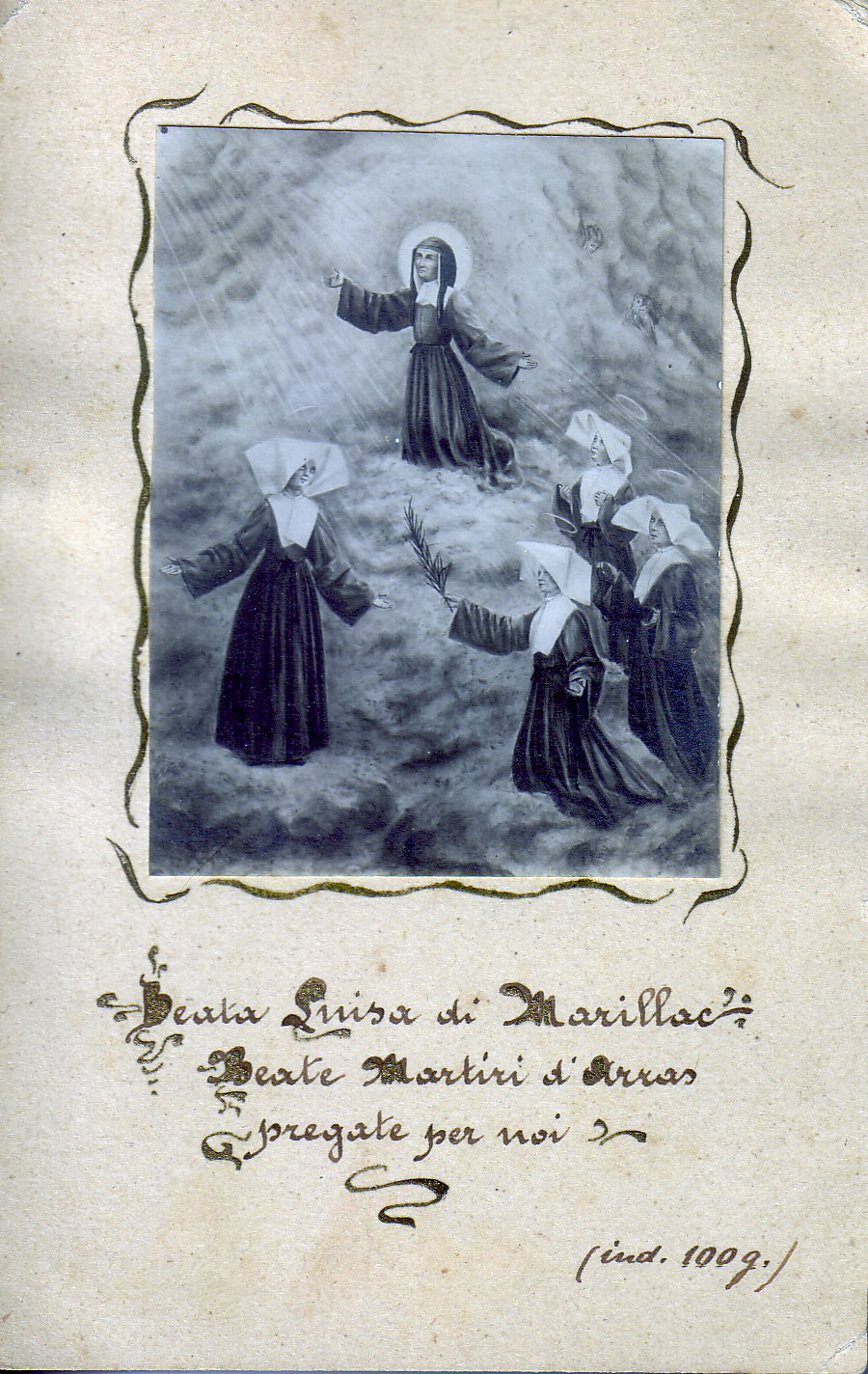 Italian text: Blessed Louise de Marillac, Blessed martyrs of Arras, pray for us. (100 days indulgence)