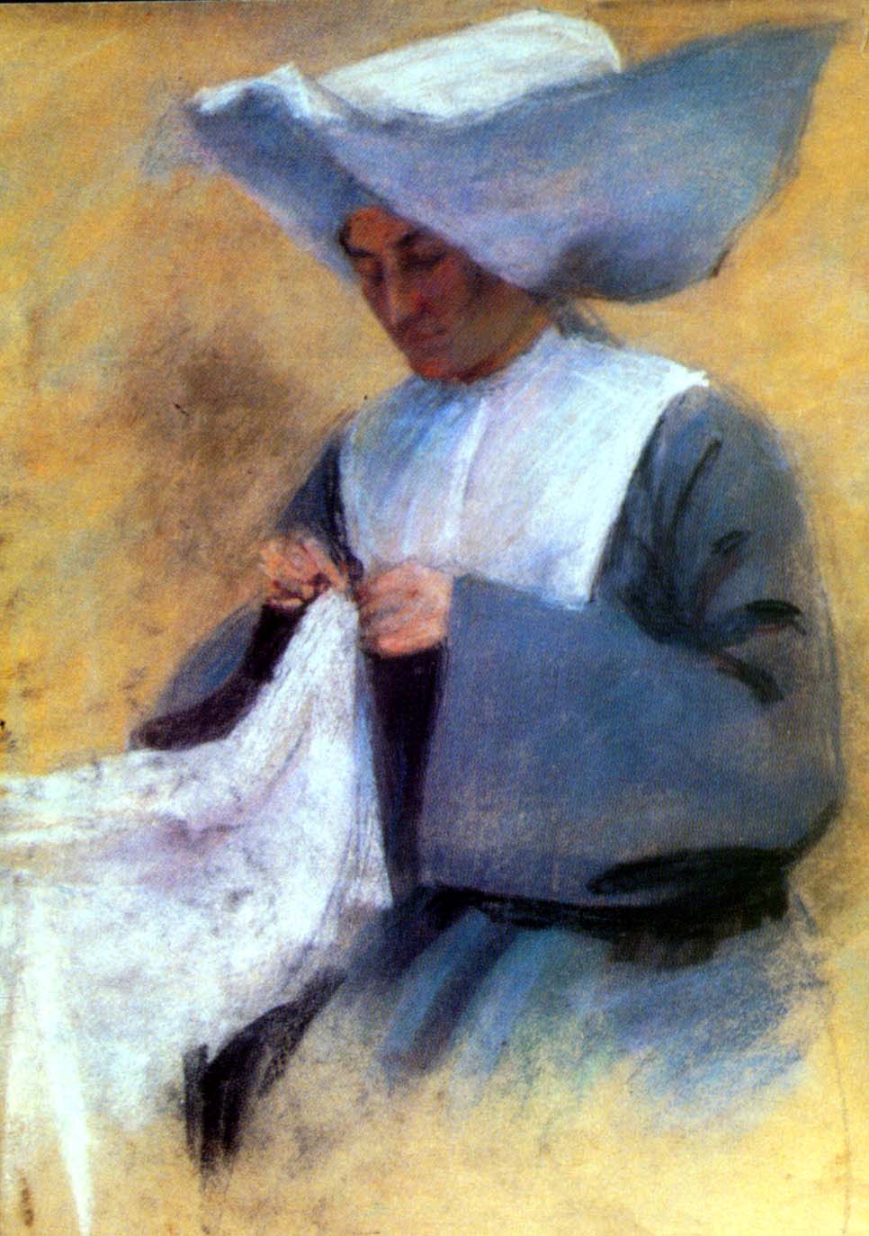 Fille de la Charité à l'ouvrage. Pastel; Auteur inconnu. Collection Paul GUNTH cm