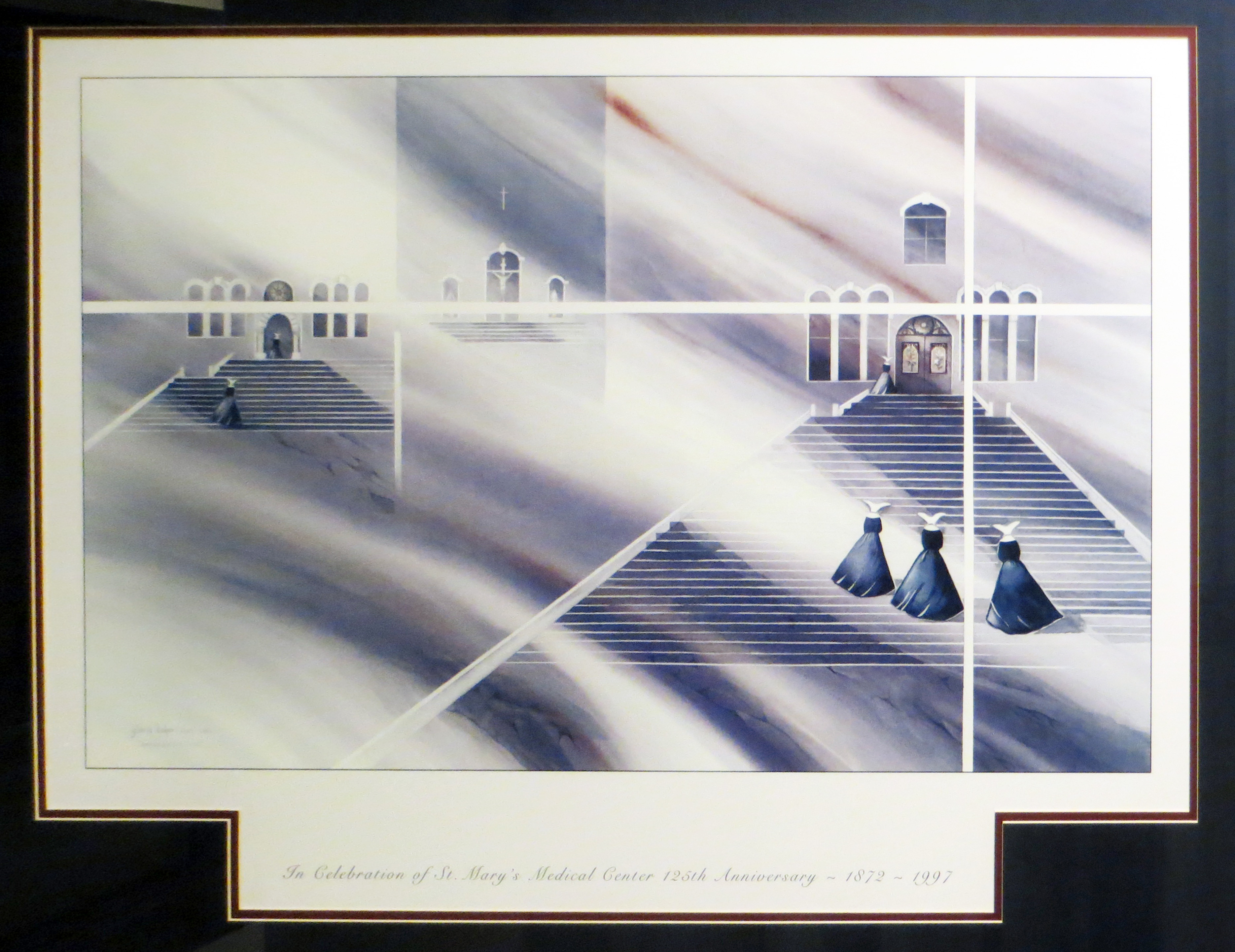 Artist: Gloria Baker; Text: In Celebration of St. Mary's Hospital Center, 125th Anniversary -- 1872-1997 (Name changed to St. Vincent's Hospital, 2017)