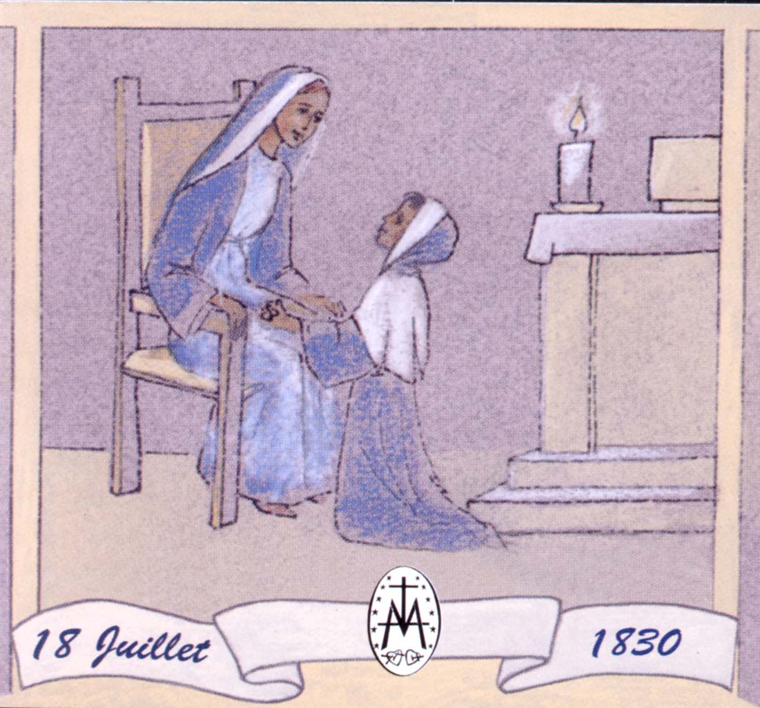 Apparition rue du Bac : Catherine met les mains sur les genoux de Marie, Dessin Brunor