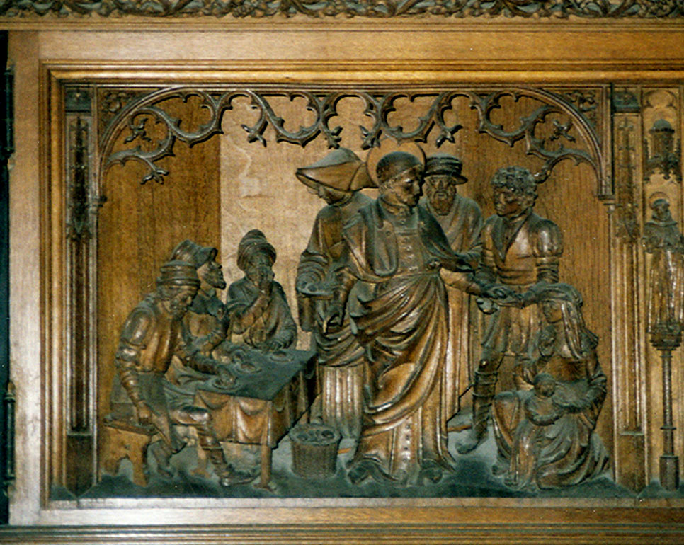 Detail of Antwerp altar piece; Vincent de Paul, Daughter of Charity, Lady of Charity, bringing help to poor in their home