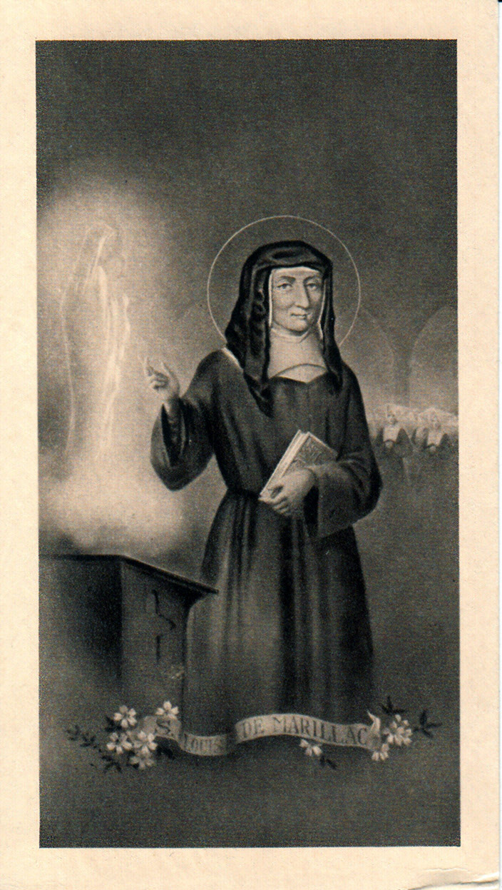 Louise gesturing to the statue of Mary, "our only mother"