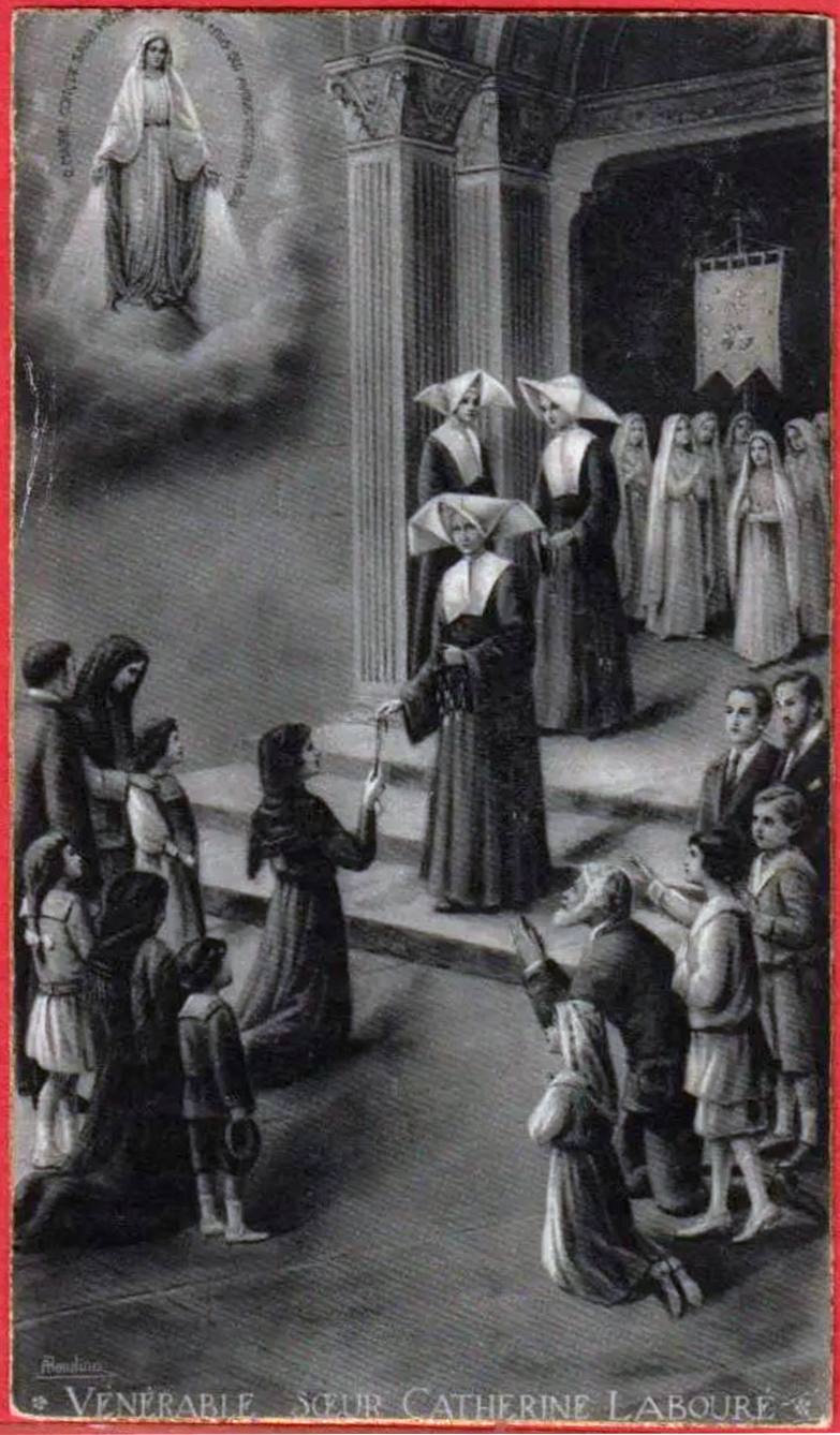 Children of Mary (a devotion promoted by Catherine) coming out of the church Internet image