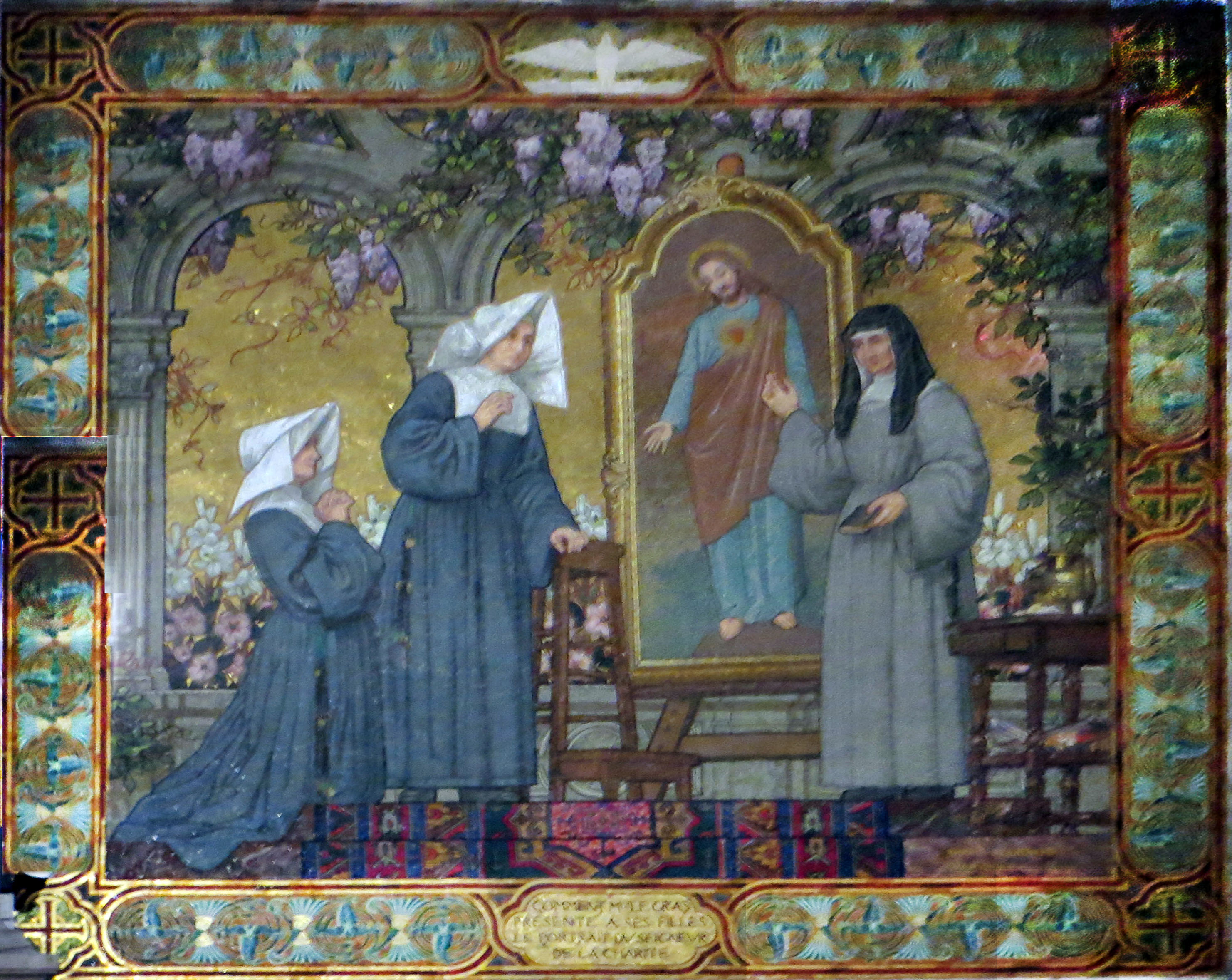 Mosaic panel in Vincentian side altar, Sacré Coeur basilica, Montmartre Louise wears grey dress, widow's veil