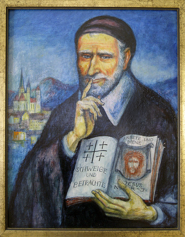 Vincent de Paul, text: Silence and respect; prayer and service; artist: Max Spielmann; internet image