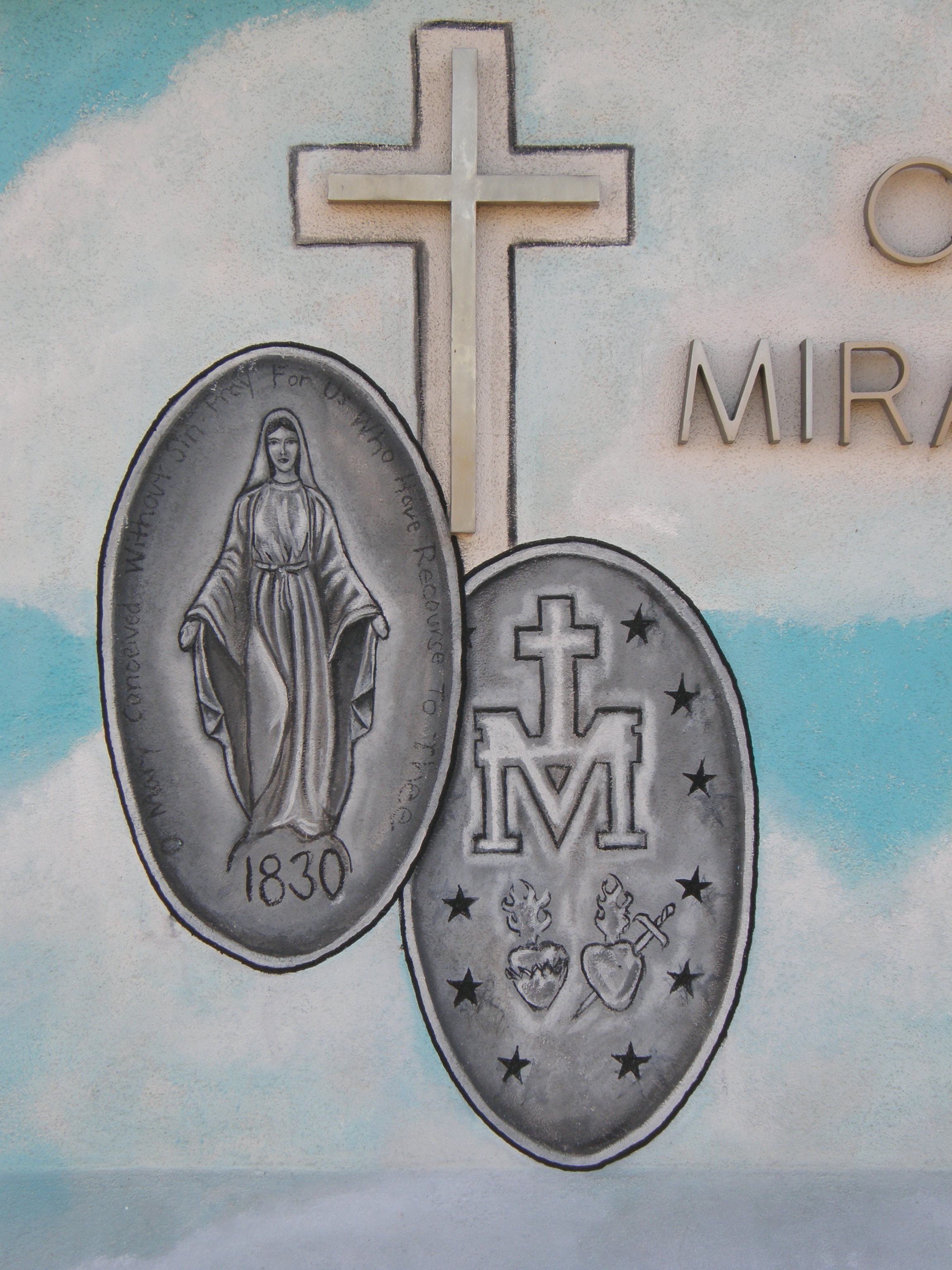 Mirac. Medal (285), CA, Montebello, church Ch mural.JPG