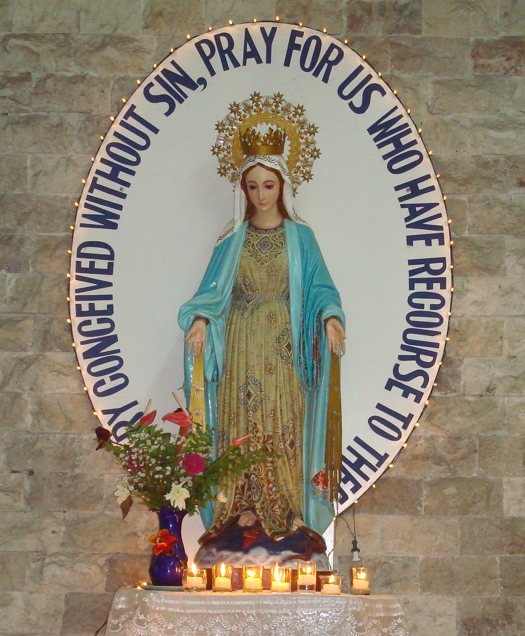 Text combined with Spanish statue