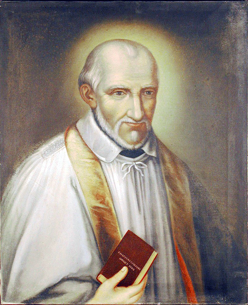 Text on book: Caritas Christi Urget Nos; motto of the Daughters of Charity