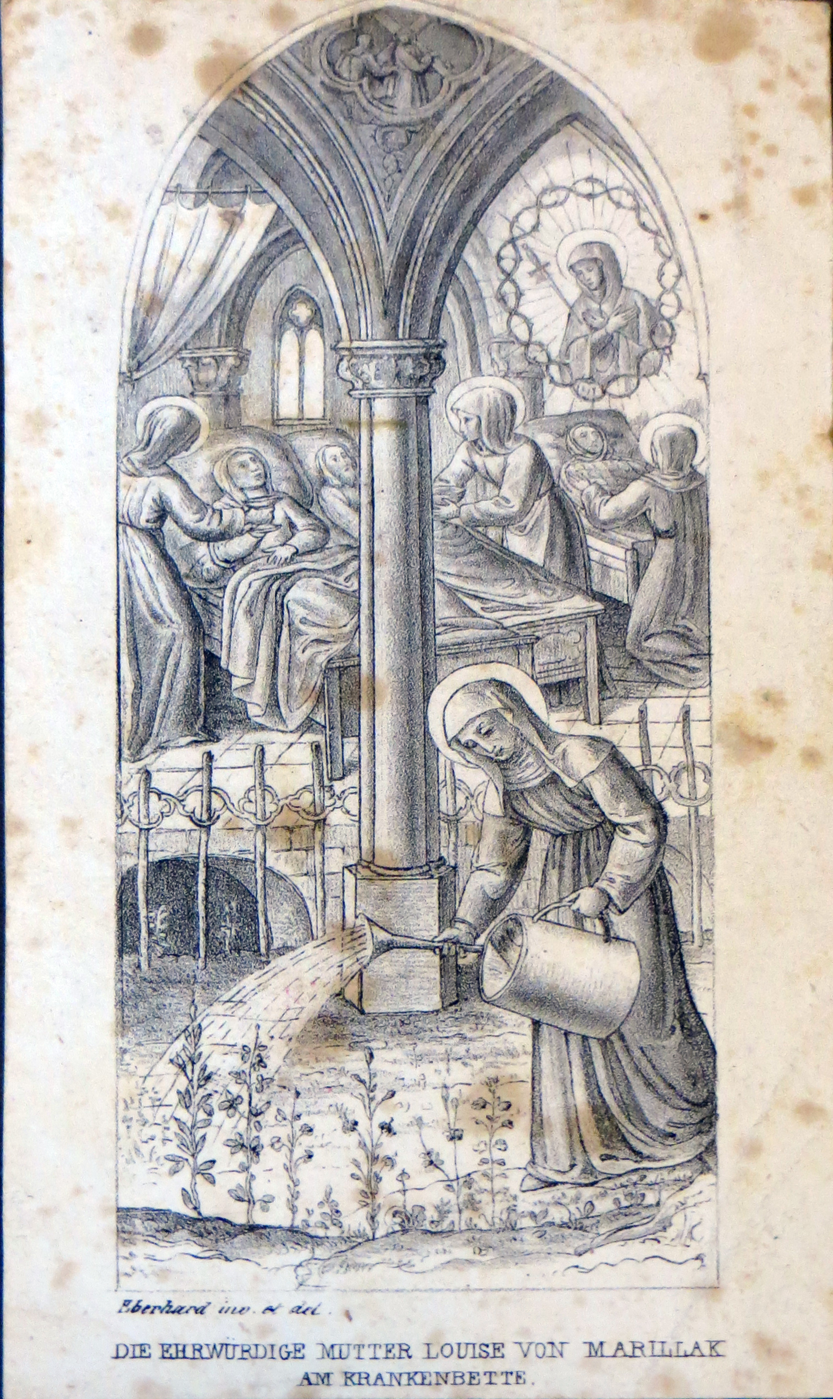 Text: The Blessed mother, Louise de Marillac, at the bedside of a sick person Archives, Sisters of Charity of Munich