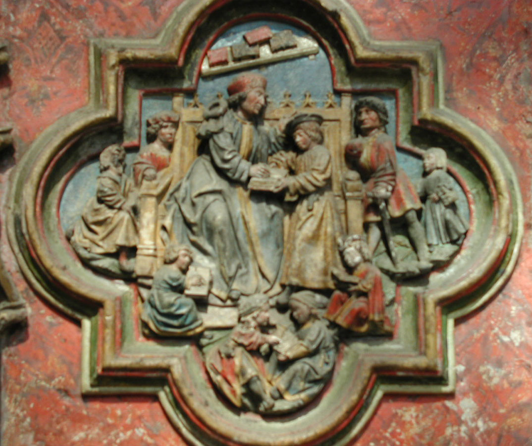 Amiens, cathedral, priest teaching school1 P4080004.jpg
