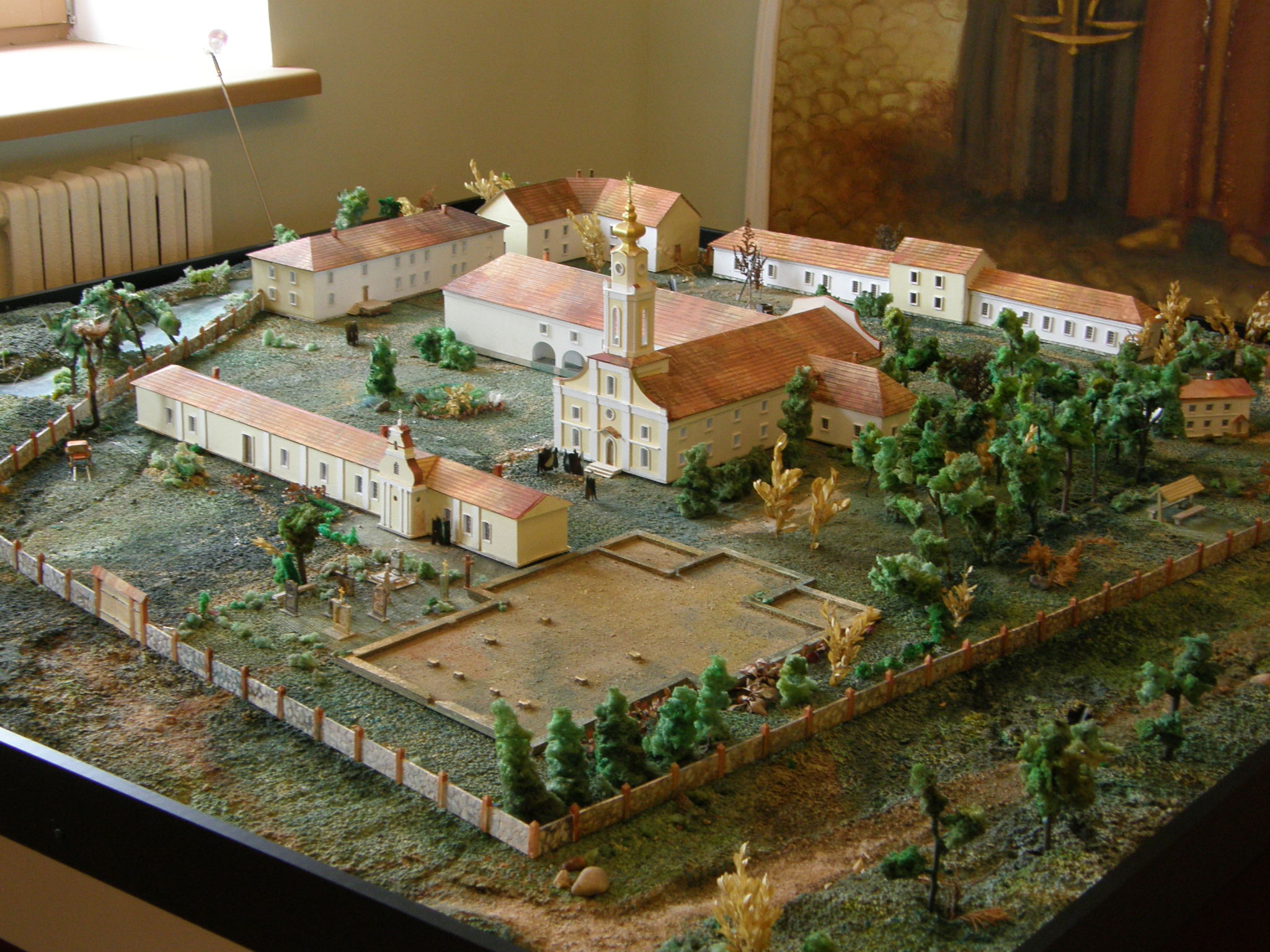 Model of Vincentian church, house, and outline of earlier church of Orsza