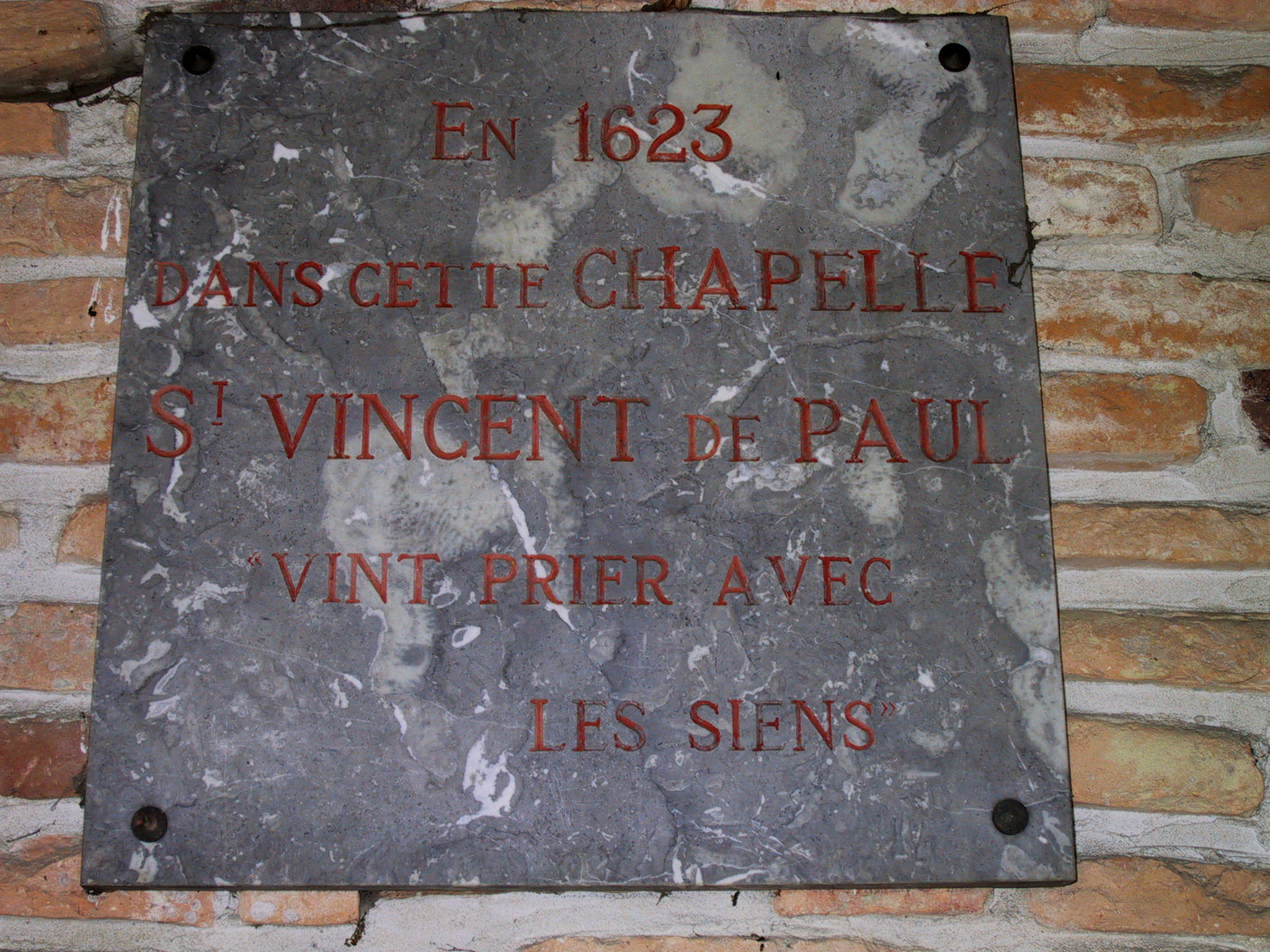 Text: In 1623, in this chapel, SVdP came to pray with his family