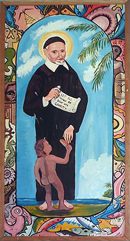 Work of local artist in diocese of Auki, in Holy Spirit parish, Buma, West Kwaio, Malaita. Gift from Bishop Chris Cardone to Sisters of Charity of SVdP, Zagreb, working in Buma. Courtesy of Sr. Marinka Blataric.