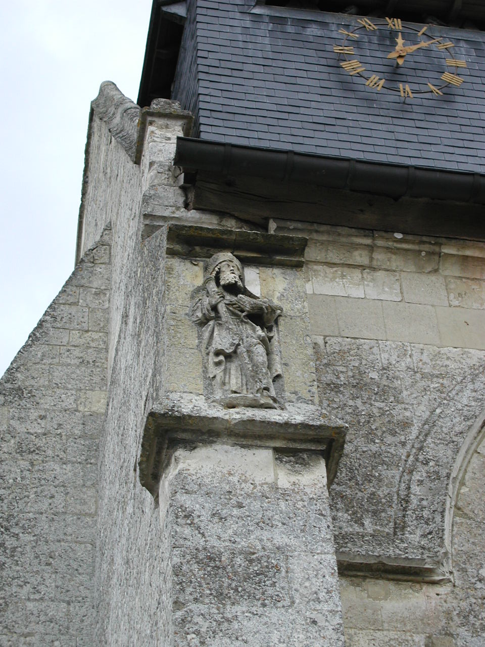 Folleville, church ext., Santiago statue.JPG