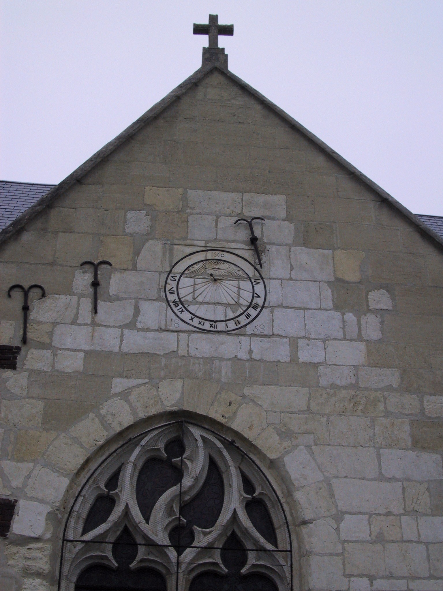Gannes, church, sundial, 1660.JPG