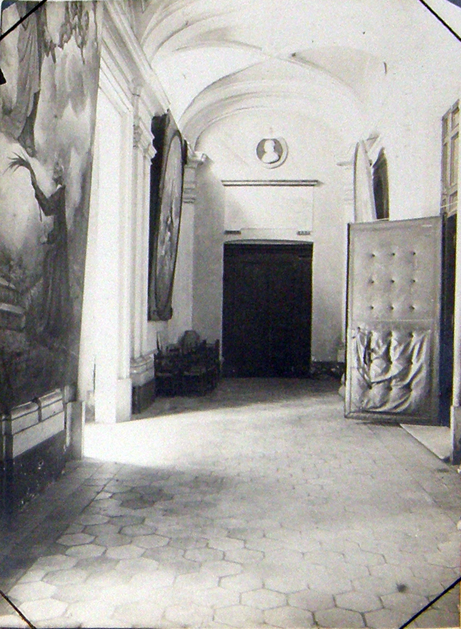 From photographs in Leonine College archives, Rome; chapel now demolished; note oval canonization painting in background left