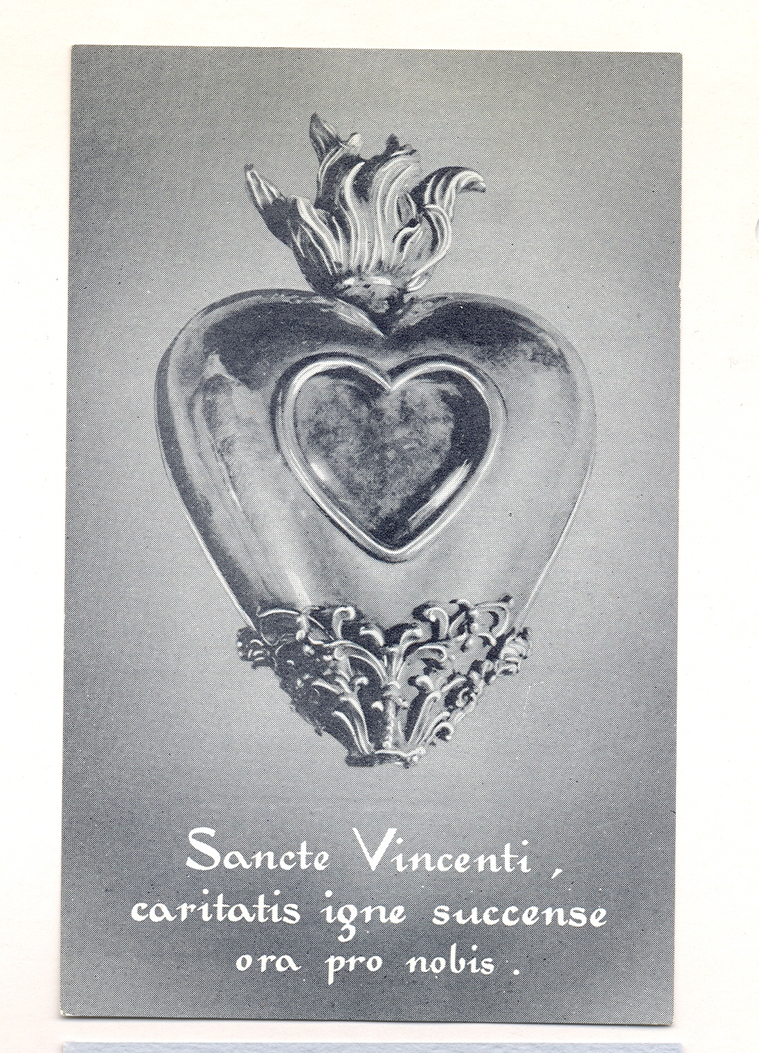 Latin text: "St. Vincent, on fire with the flame of charity, pray for us"