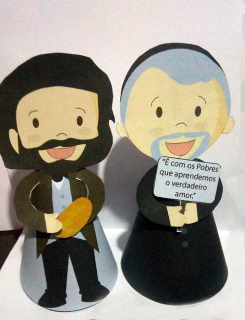Paper dolls for table decoration Text: We learn true love with the poor.
