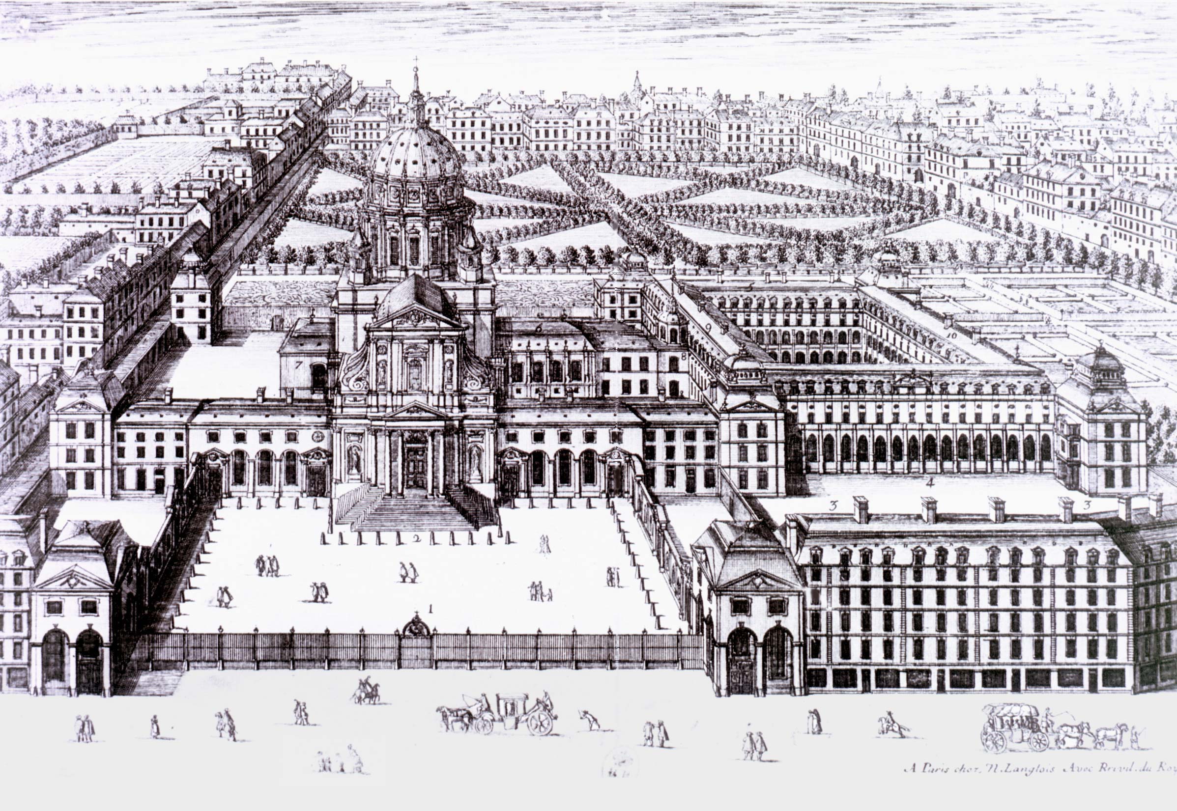 L'Abbaye royale du Val-de-Grâce, (1646-166) Architectes Fr. Mansart et Jq Lemercier; Construit par Anne-d'Autriche. Gravure