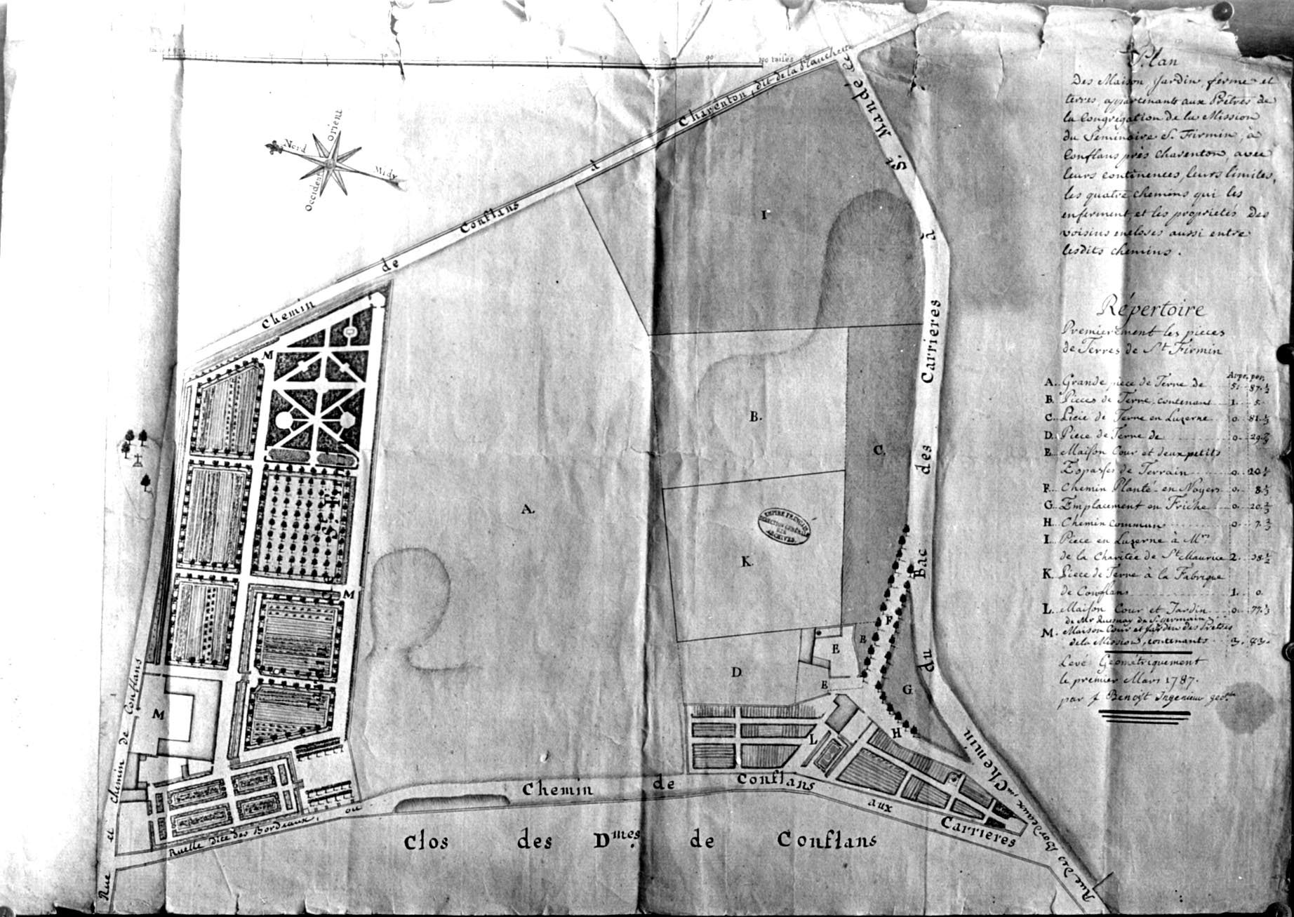Country house of the seminary of St-Firmin (Bons-Enfants) at Conflans near Paris (St-Mandé-Charenton) taken away on 1 March 1787; source: National Archives, S 6852