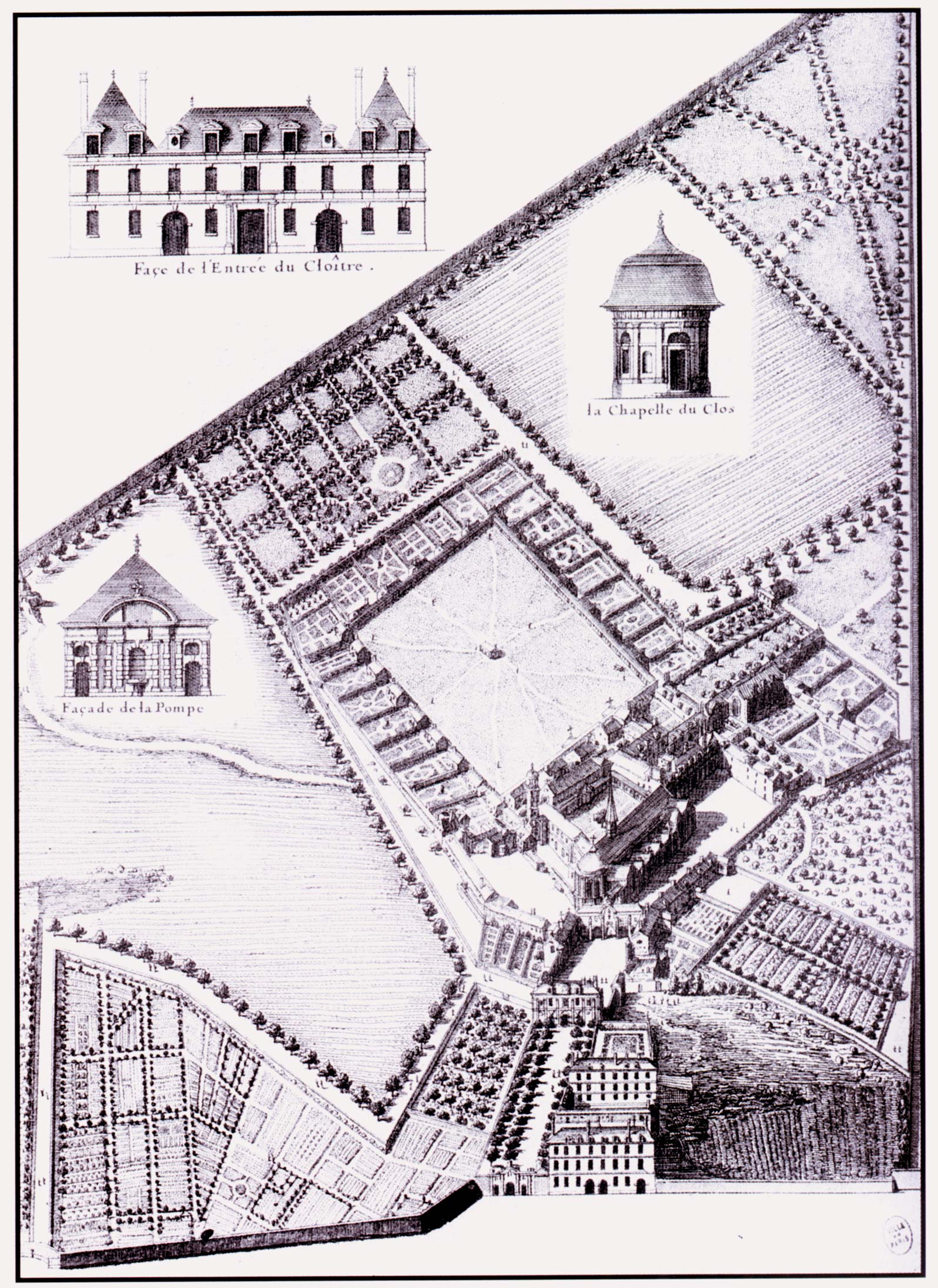 La Chartreuse de Vauvert de PARIS, Elle se situait sur l'emplacement actuel des jardin du Luxembourg. Gravure de G. PŽrelle, 17e sicle.