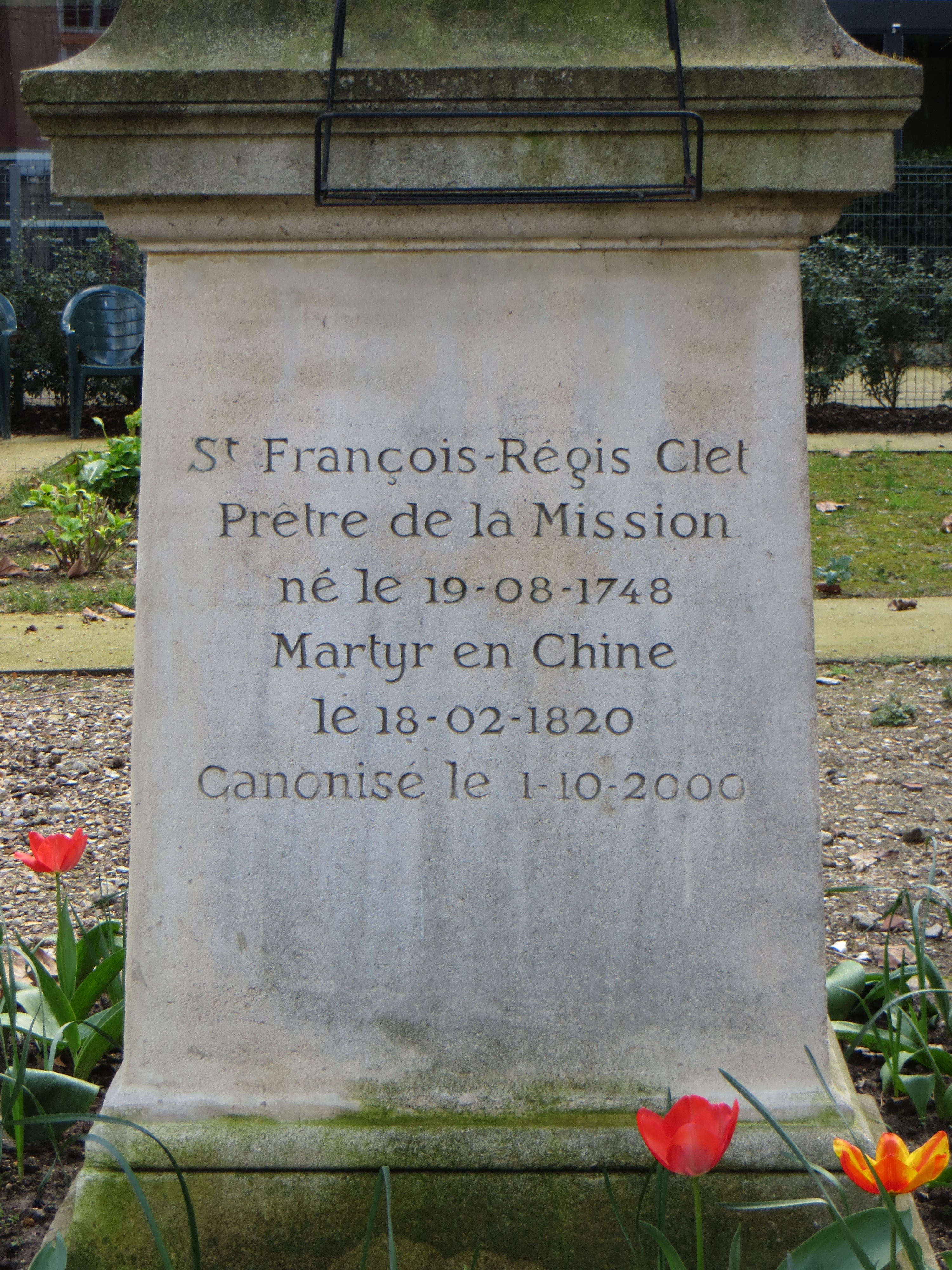 Paris, rdSevres, garden, statue base, Clet.JPG