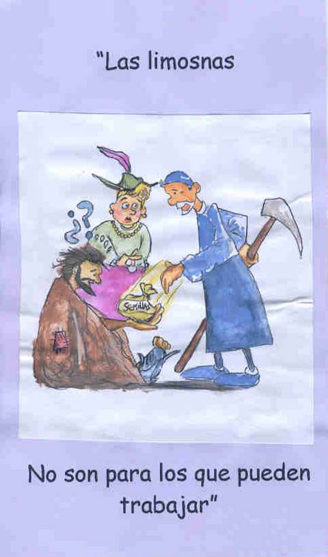 Alms are not for those who can work. Bag with seeds.