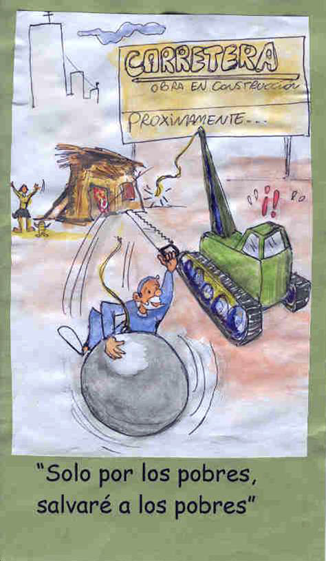 Only for the poor will I save the poor. Sign: Highway, road works, coming soon
