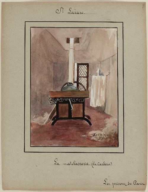Paris, St. Lazare, drawing 58, watercolor, Matress shop, carding machine.jpg