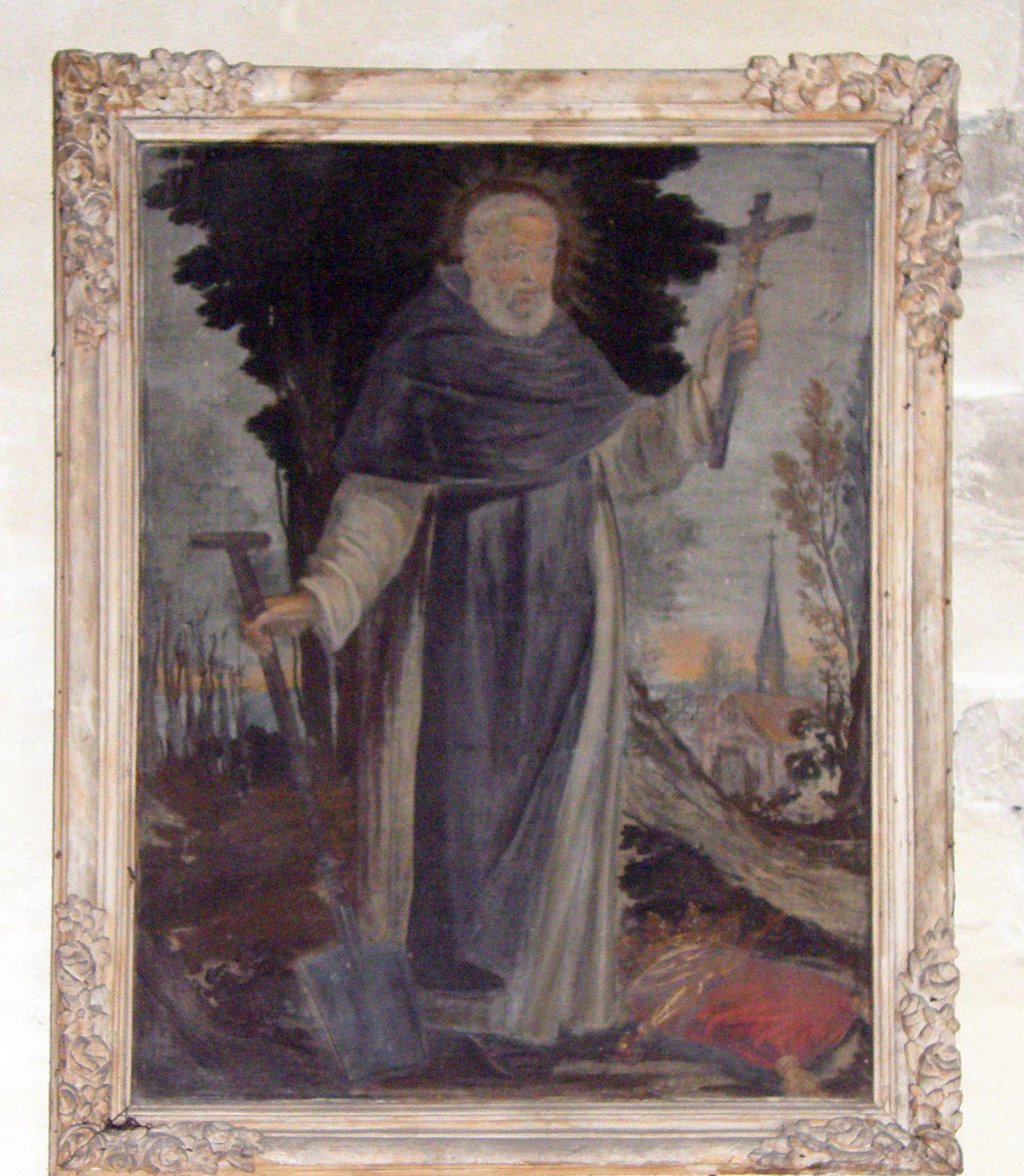 Similar model to St. Vincent preaching in rural areas, holding crucifix