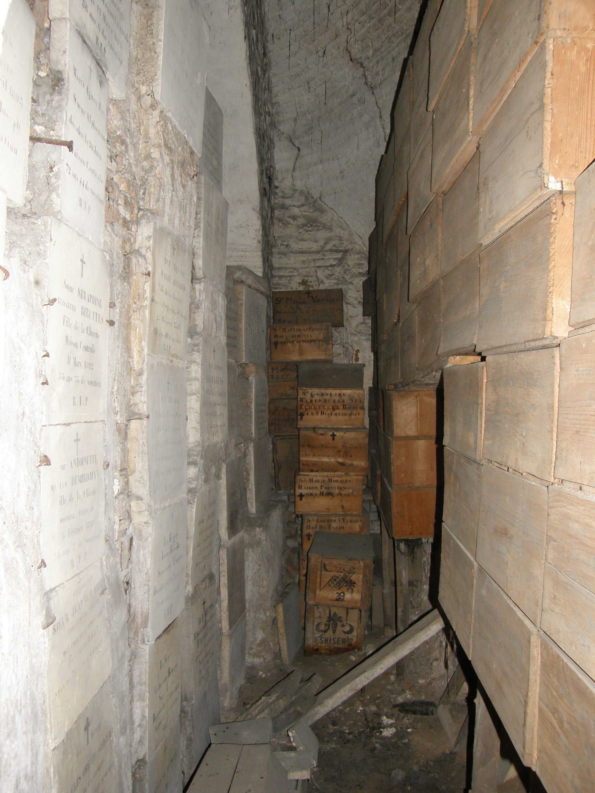 Istanbul, St. Benoit, crypt, burial boxes.JPG