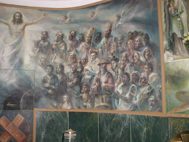 Chapel mural, Risen Christ with saints: Vincent de Paul, Vincentians and others, both eastern and western; original in Vincentian church, Thessalonika