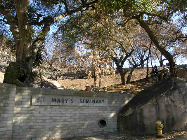 CA, Santa Barbara, St. Mary's Seminary, after a brush fire.JPG