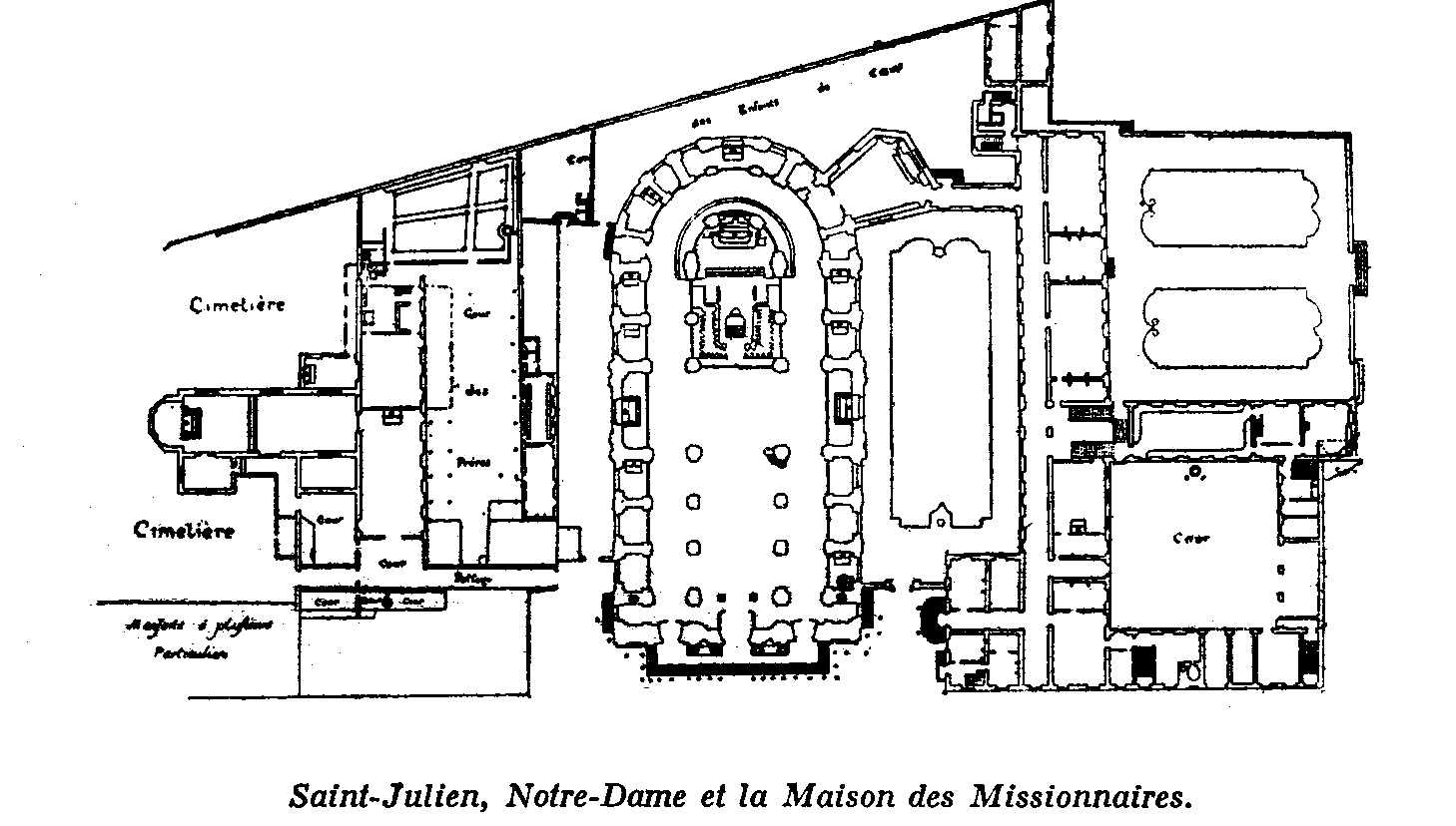 Includes earlier church, St. Julien