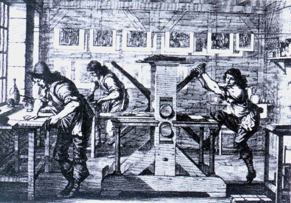 L'imprimerie au 17e sicle. Impression des plaches en taille douce.Abraham Bosse, 1642