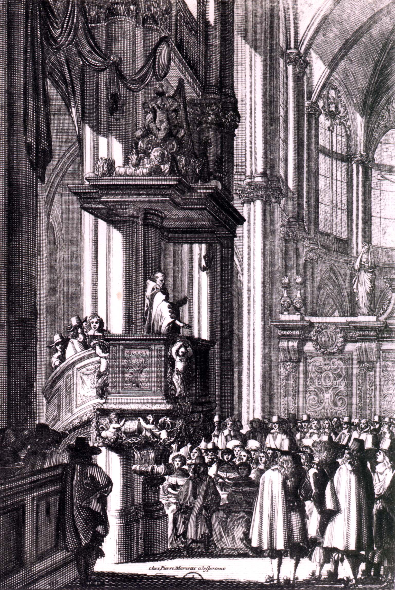 PrŽdicateur en chaire au XVIIe sicle. (2e moitiŽ) Gravure de J. Lepautre (1618-1682) 14x21,5. chez pierre Marieve ˆ l'espŽrance BN. Est. 42d