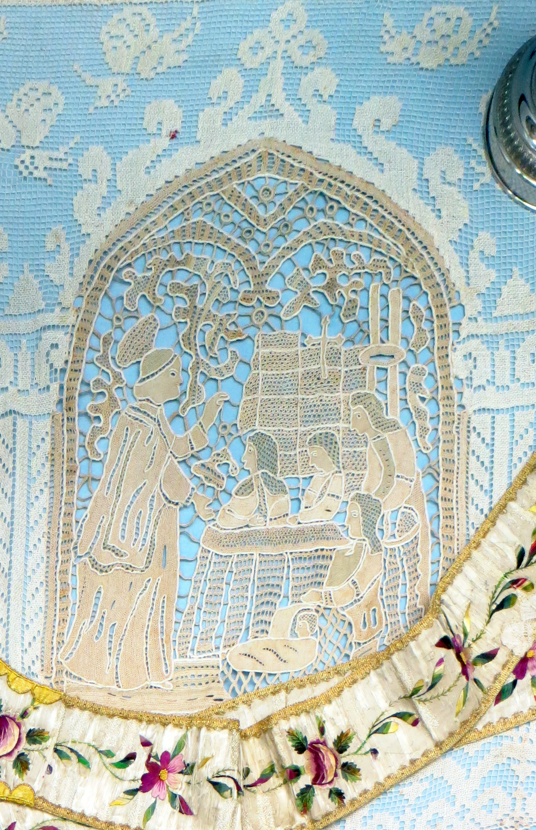 An original and rare representation of the event. includes a notary in foreground, taking minutes. Lace altar frontal, with stole below