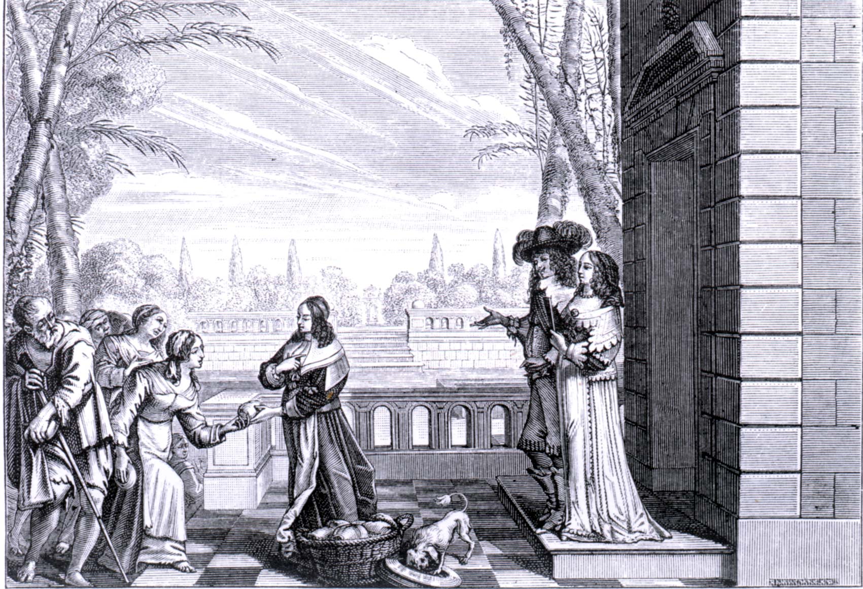 Oeuvres de miséricorde : donner a manger, gravure d'Abraham BOSSE, 17e siècle,