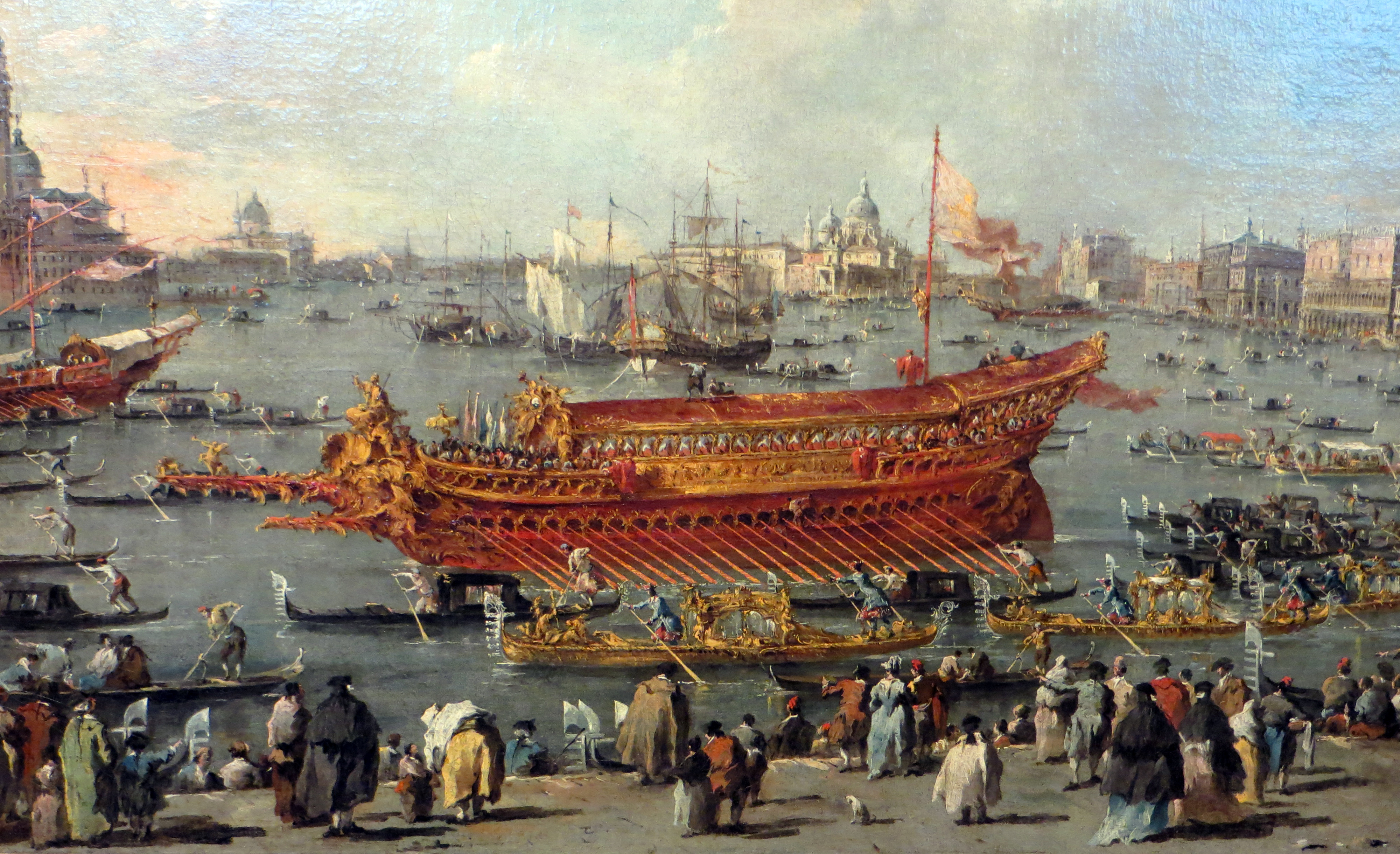 Detail from Francesco Guardi, Departure of the Bucentaure for the Lido of Venice; original in Louvre.