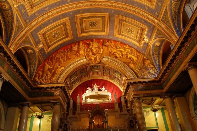 Trompe l'oeil, Vincent de Paul triumphal arch in chapel of Vincentian mother house; signed; dated 1855