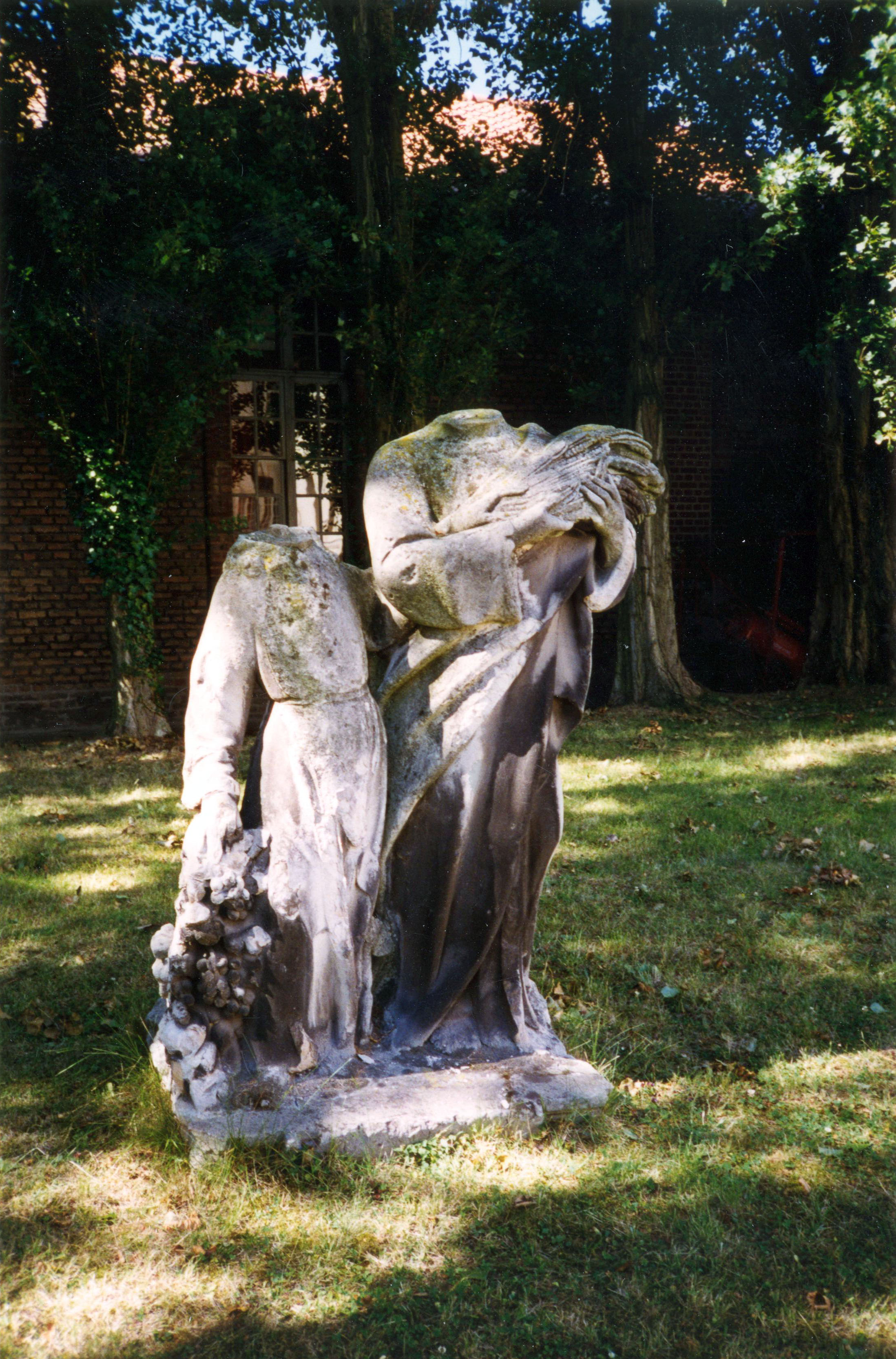 Statue with broken heads, at former Vincentian diocesan seminary, Amiens