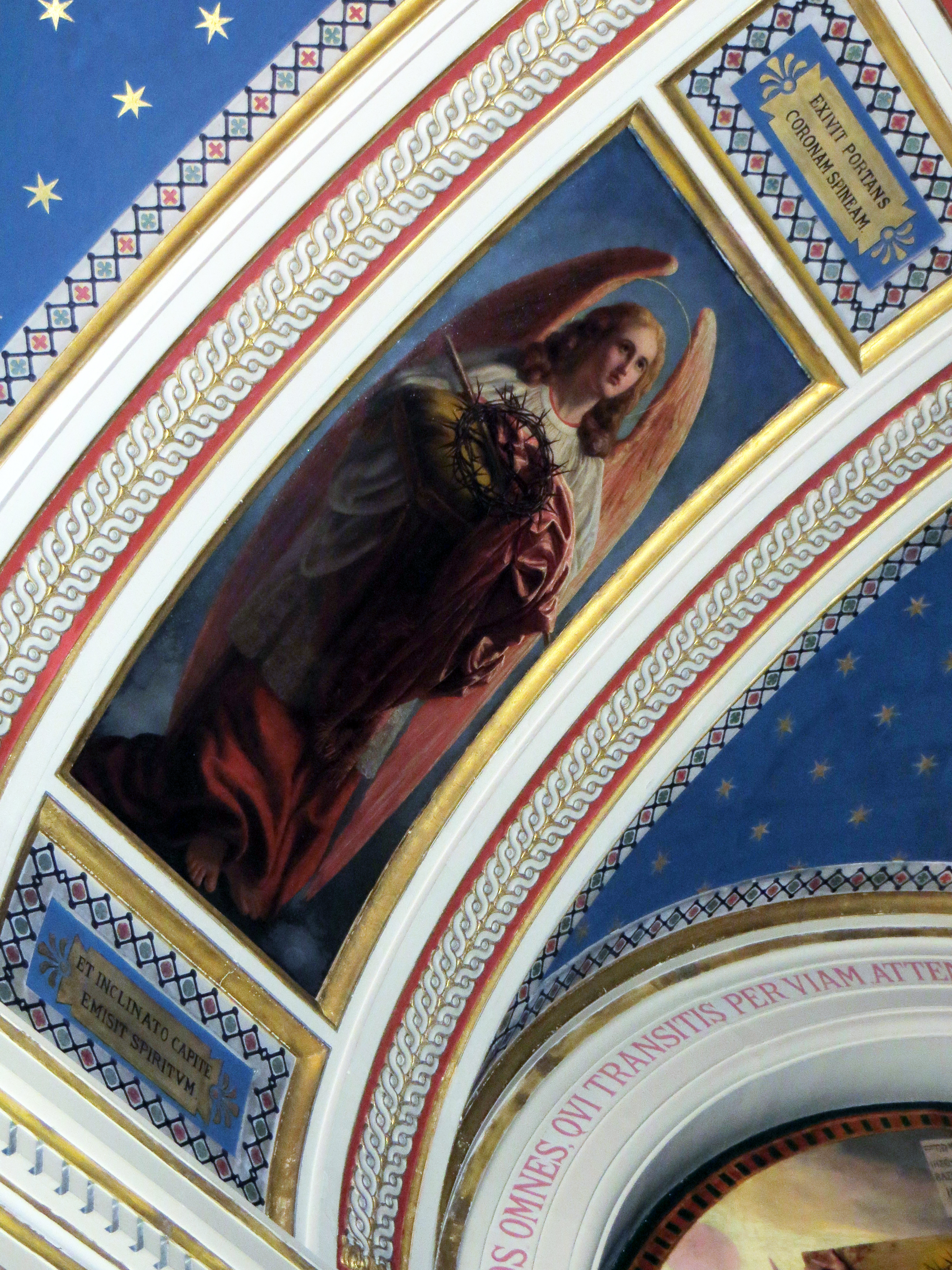 Text above: Exivit portans coronam spineam (Jn 19:5) Text below: Et inclinato capite emisit spiritum (Jn 19:30)
