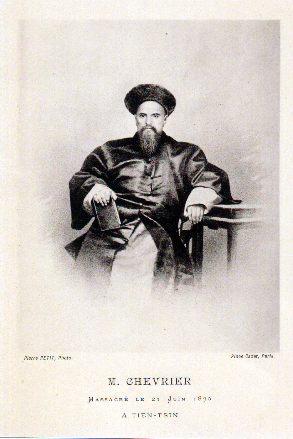 Photographic portrait of Claude Chevrier (1821-1871); massacred at Tien-Tsin; photo by Pierre Petit, who also painted Vincentian portraits.