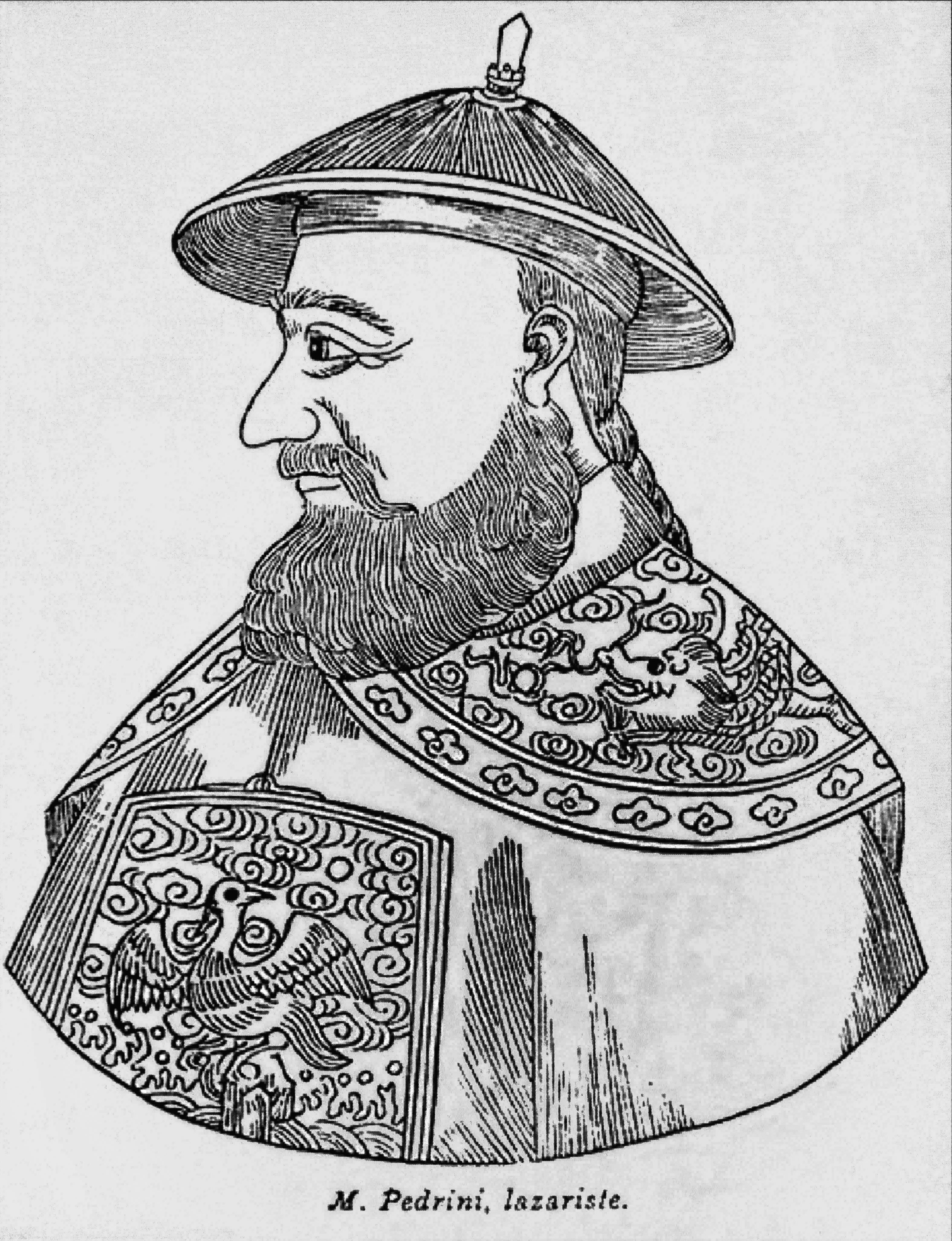 Engraving of Pedrini, in profile, but based on painting; in Favier's book on Beijing