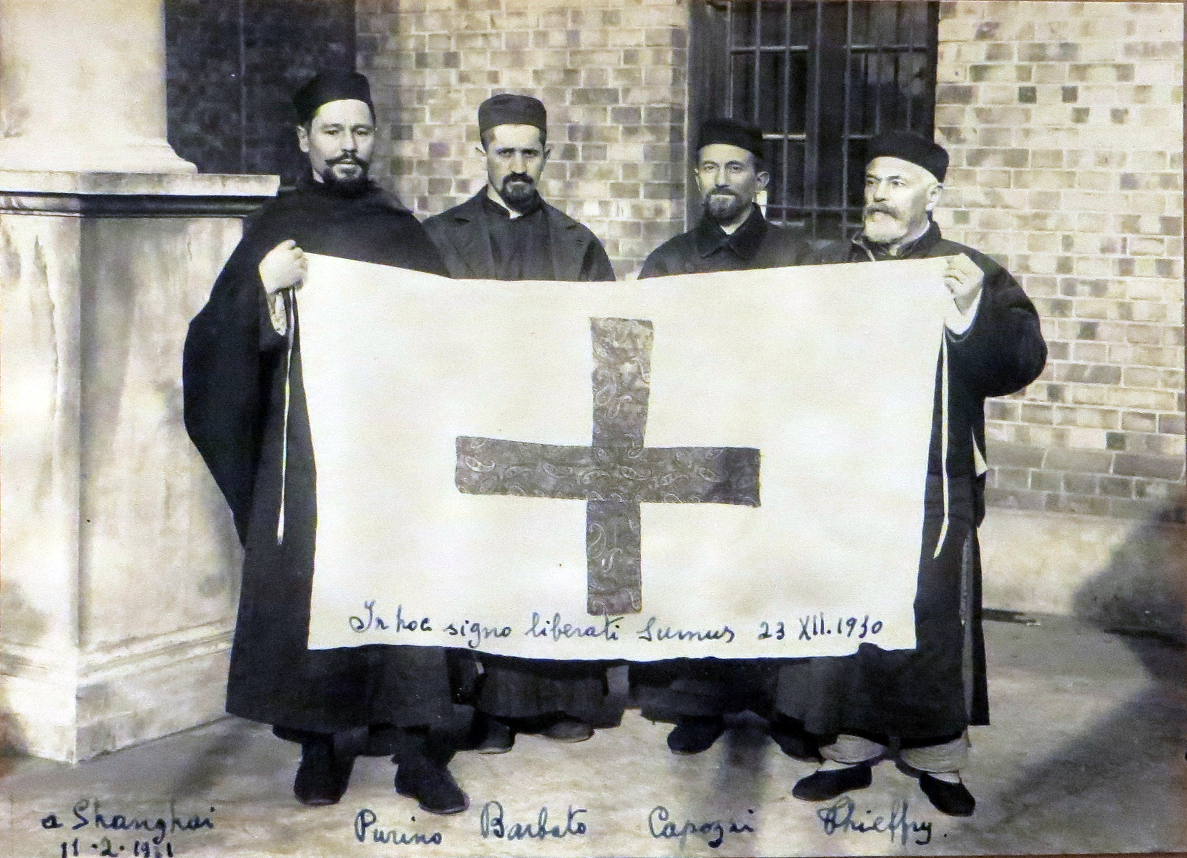 Photographed in Shanghai, 11 Feb. 1931; saved by a Red Cross banner Original in Archives of the Roman Province, Collegio Leoniano